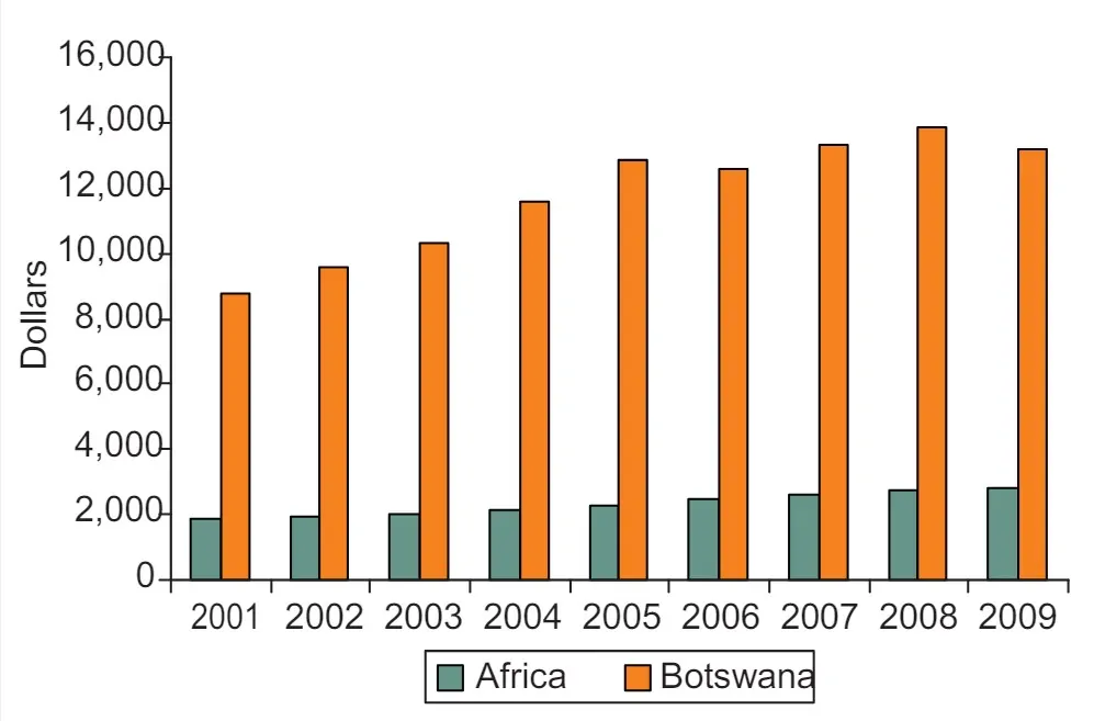 Figure 4.2: Average per Capita Income in Africa and Botswana, 2001–09 (purchasing power parity at current dollar prices)