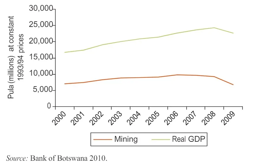 Figure 4.4: Mining Revenues and Real GDP in Botswana, 2000–09
